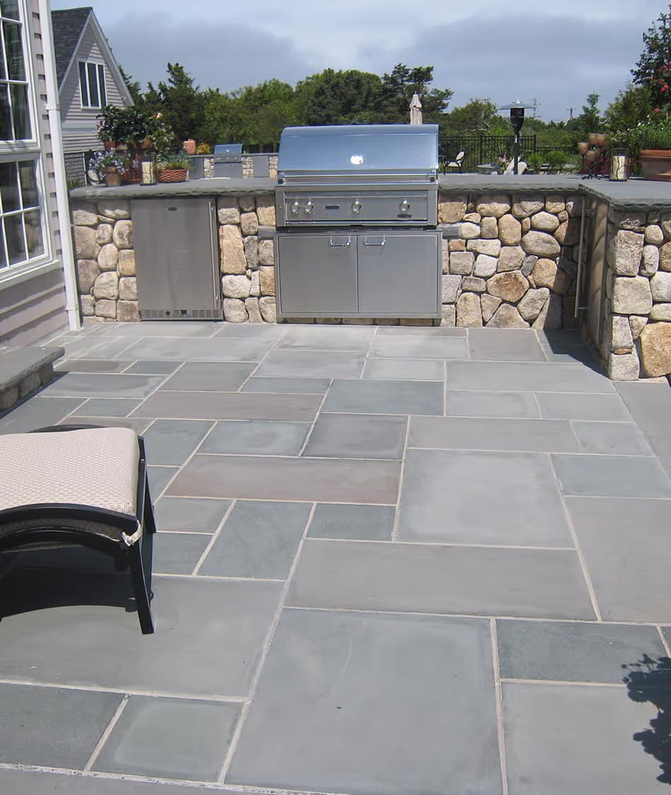 Pennsylvania bluestone is a dense, strong, fine-grained sandstone quarried in the northeastern United States, mostly in Pennsylvania and upstate New York. It is an excellent material for decks and patios as it resists cracking and won’t discolor. It easily can be separated into slabs of varying sizes, making it suitable for other architectural details such as steps, walls, building facades, interior floors, and fireplaces. Bluestone has a distinctive hard-yet-soft quality that makes it very appealing. It's not soft enough to bask and in the sun yes it’s smooth enough to walk and sit on - making Pennsylvania Bluestone a beautiful, comfortable and safe environment year-round.