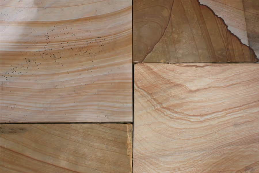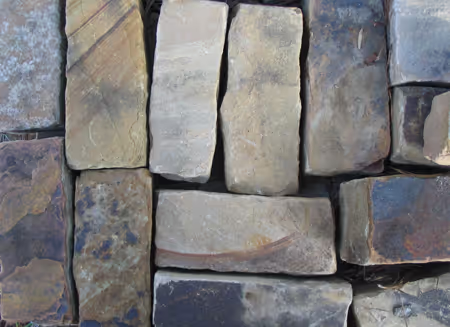 Tennessee Crab Orchard is a form of Sandstone that can only be found and quarried at the Cumberland Plateau in Tennessee. It is acknowledged for being a very hard stone, and high concentrations of silica made in the stone make it resistant to harsh weather conditions. Its color pattern is excessively marbled and includes rust, tan, orange, pink, brown, blue and grey. It can be used for patios, walkways, stepping stones, wall caps, and fireplace hearths.
