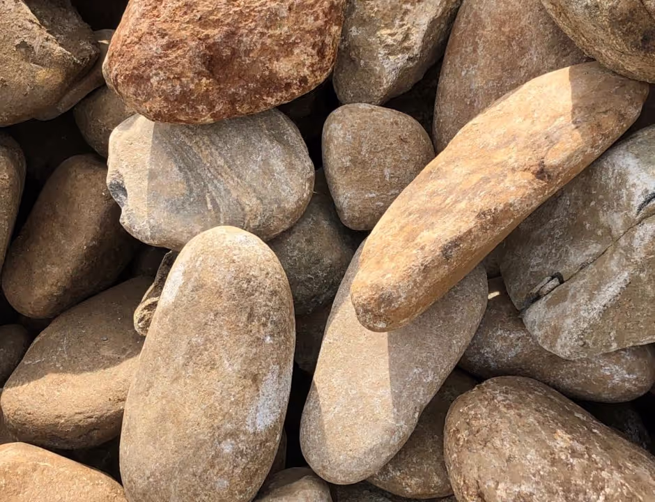 is a water-worn stone with a smooth texture, soft shape and interesting color patterns. Cane Riverstone is great for making functional drainage swales beautiful, and is sometimes used as ground cover in beds or veneer for walls and fireplaces.